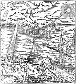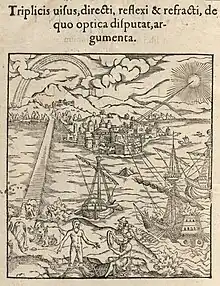 Il aborde aussi le problème de la vision binoculaire[18],[33],[34], énonçant une première version de ce qui deviendra la loi d'Hering d'égale innervation (en)[35]. Il se penche sur l'illusion lunaire pour l'expliquer par de mauvaises appréciations des distances et des référentiels plutôt que par la réfraction[36].