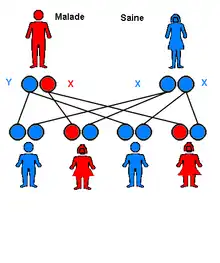 • La mère atteinte transmet sa maladie à la moitié de ses filles et de ses garçons.