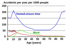 En raison de différences anatomiques et physiologiques, les blessures chez les enfants doivent être abordées différemment de celles des adultes[85]. Les accidents sont la principale cause de décès chez les enfants de 1 à 14 ans[69]. Aux États-Unis, environ seize millions d'enfants se rendent chaque année aux urgences en raison d'une blessure. Les garçons sont plus fréquemment blessés que les filles dans un sex-ratio de 2:1. Les cinq blessures non intentionnelles les plus courantes chez les enfants, dans le monde en 2008, sont les accidents de la route, les noyades, les brûlures, les chutes et les intoxications[86].