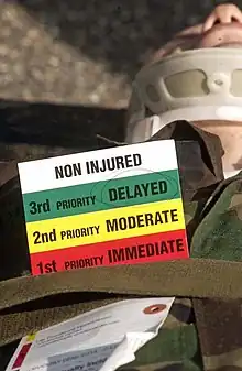 Le triage médical, lorsque le nombre de patients à traiter dépasse la capacité de soin, permet de déterminer quels patients sont prioritaires et l'ordre dans lequel ils vont être traités et évacués, avec l'objectif de sauver le maximum de personnes[1].