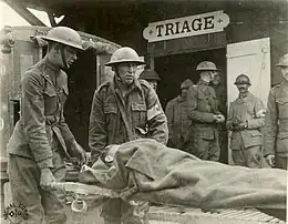 Dans l'armée française, un système de triage est codifié dans un règlement de 1910, et testé au cours d'exercices en 1912. Ce système séparait les blessés capables de marcher, ceux qui pouvaient supporter un transport assis ou couché, et les « non transportables ». La priorité est donnée à l'évacuation loin du front, « en commençant par le fond », les hôpitaux les plus lointains se remplissant au fur et à mesure[3].