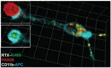 Dernièrement, le terme est attribué aux macrophages, tels que les microglies résidant dans le SNC, qui sont capables d'éliminer partiellement de petites portions d'axones neuronaux au cours du développement postnatal[8].