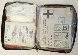 - ↑ Caractéristiques de la trousse de secours, sur legifrance.gouv.fr.