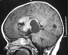 IRM d'une tumeur tératoïde rhabdoïde atypique.