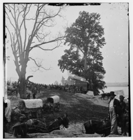- ↑ A Leesburg, à l'automne 1862, 500 patients furent ainsi évacués en urgence pour être transportés à Washington. En juin 1863, 10 000 hommes, laissés en arrière par l'armée du Potomac marchant sur Fredericksburg, furent convoyés par bateau vers la capitale (Stillé, p.299).