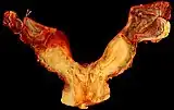 - ↑ Jijgee Munkhdelger, Khalilullah Mia-Jan, Dong Soo Cha, Minseob Eom : Endometrial carcinoma arising in a bicornuate uterus. In : Obstetrics & Gynecology Science. Volume 57, numéro 5, septembre 2014, p. 401-404.