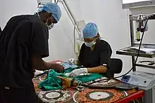 Les vétérinaires courent des risques professionnels tel que blessures (morsures, griffures et coupures), zoonotiques, radiologique et de burn-out[47].