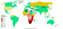 Prévalence estimée du VIH parmi les jeunes adultes (15-49 ans) par pays en 2011