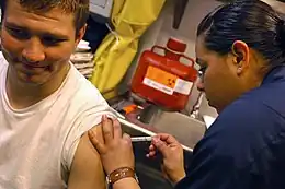 - ↑ (en) Roome AJ, Walsh SJ, Cartter ML, Hadler JL, « Hepatitis B vaccine responsiveness in Connecticut public safety personnel », JAMA, vol. 270, no 24, , p. 2931–4 (PMID 8254852)