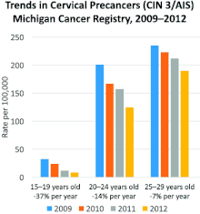 En Suède, une réduction des lésions précancéreuses de 75 % a été observée chez les jeunes filles vaccinées avant l'âge de 17 ans en comparaison aux autres jeunes filles[27].