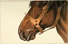 Le horsepox virus touche les chevaux et autres équidés. Les lésions de horsepox sur le cheval se situent à la bouche et au nez[34].