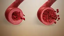 Le vaisseau sanguin vasodilaté (à droite) laisse passer plus de sang que le vaisseau sanguin normal (à gauche).