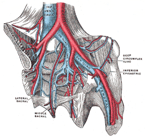 La veine iliaque externe fait suite à la veine fémorale après le ligament inguinal, s'unit avec la veine iliaque interne pour former la veine iliaque commune.