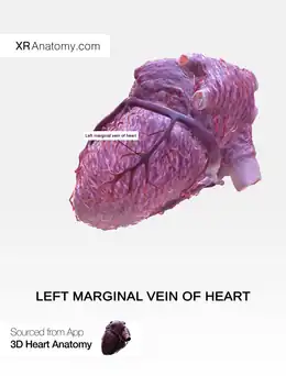 La veine marginale gauche remonte le long du bord gauche du cœur accompagnée du rameau marginal gauche de l'artère coronaire gauche.