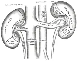 - la partie supérieure de l'uretère gauche (branche urétérique de la veine rénale gauche) [1]