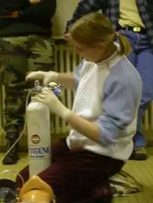 - si l'on est deux, une personne bouche la tomie et l'autre pratique le bouche-à-bouche classique ;