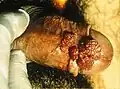 Cas sévère de condylomes génitaux sur un pénis