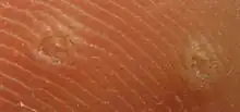 Vue à la loupe, une verrue évoque souvent une forme de fleur, avec de minuscules pétéchies foncés ou des taches thrombosées évoquant des capillaires dans leur centre. Des saignements peuvent survenir si elles sont éraflées.