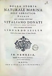 Vitaliano Donati étudie la flore et la faune dans la mer Adriatique et il publie en 1745 Della storia naturale marina dell'Adriatico, qui sera traduit dans plusieurs langues européennes.