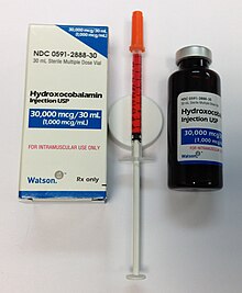 - ↑ Bolaman Z, Kadikoylu G, Yukselen V, Yavasoglu I, Barutca S, Senturk T (2003) Oral versus intramuscular cobalamin treatment in megaloblastic anemia: a single‐center, prospective, randomized, open‐label study. Clinical Therapeutics ;25(12):3124‐34.