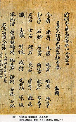 Il a servi de base au plus ancien livre japonais connu de matière médicale, Honzō Wamyō (本草和名) de Fukae Sukehito (深根輔仁)[2].