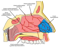 Quatre-vingt-dix pour cent des saignements de nez (épistaxis) proviennent de la zone de Kiesselbach[1].