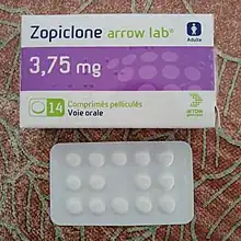 La zopiclone est un hypnotique de la famille chimique des cyclopyrrolones, apparenté aux benzodiazépines[2]. Elle est commercialisée notamment sous le nom d'Imovane. La zopiclone possède des propriétés hypnotiques, sédatives, anxiolytiques, myorelaxantes et amnésiantes.